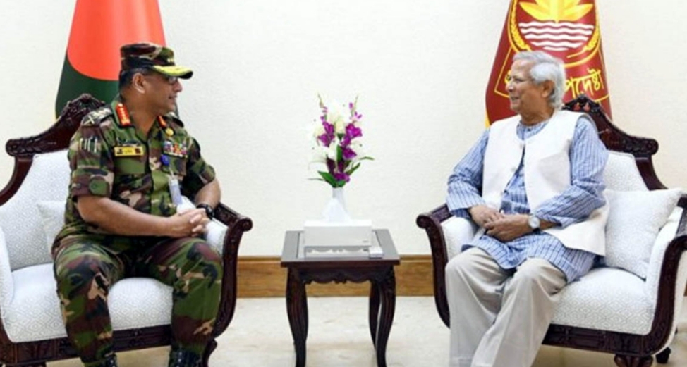 সেনাপ্রধান জেনারেল ওয়াকার-উজ-জামান প্রধান উপদেষ্টাকে অন্তর্বর্তীকালীন সরকারের প্রতি তার পূর্ণ সহযোগিতার আশ্বাস দিয়েছেন এবং চারপাশে ছড়িয়ে পড়া গুজবে কান না দেওয়ার অনুরোধ জানিয়েছেন। তিনি বলেন, সরকারের সব উদ্যোগ ও কর্মসূচি সফল করতে পুরো সেনাবাহিনী অঙ্গীকারবদ্ধ।