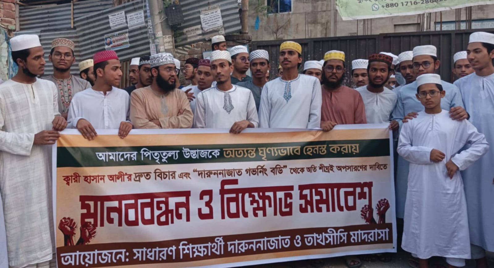দারুননাজাত গর্ভনিং বডির সদস্য কর্তৃক শিক্ষক লাঞ্ছিত, শিক্ষার্থীদের মানববন্ধন ও প্রতিবাদ সমাবেশ
