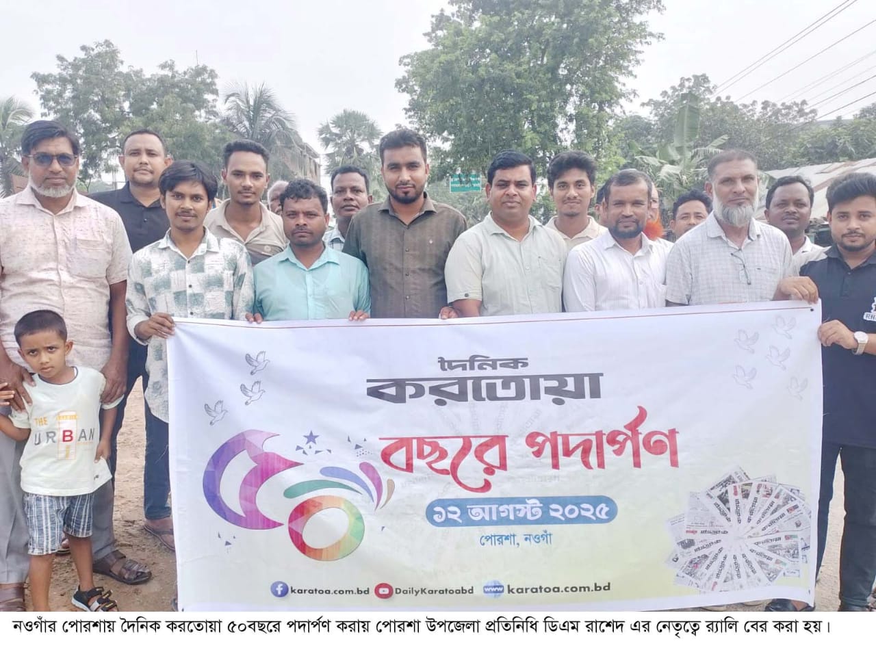 দৈনিক করতোয়ার ৫০বছরে পর্দাপণ পোরশায় র‌্যালি ও আলোচনা সভা অনুষ্ঠিত।