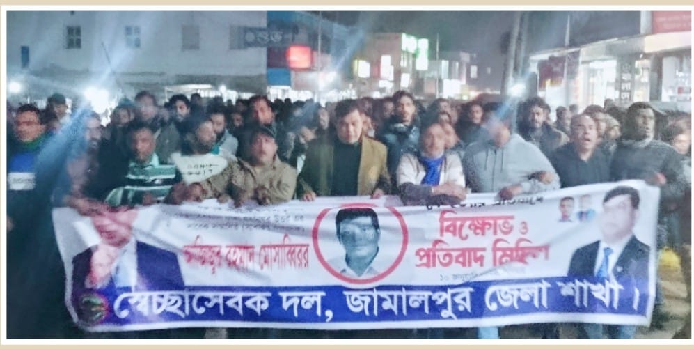 মুসাব্বির কে হত্যা করায় জামালপুর জেলা সেচ্ছাসেবক দলের উদ্যোগে বিক্ষোভ ও প্রতিবাদ মিছিল