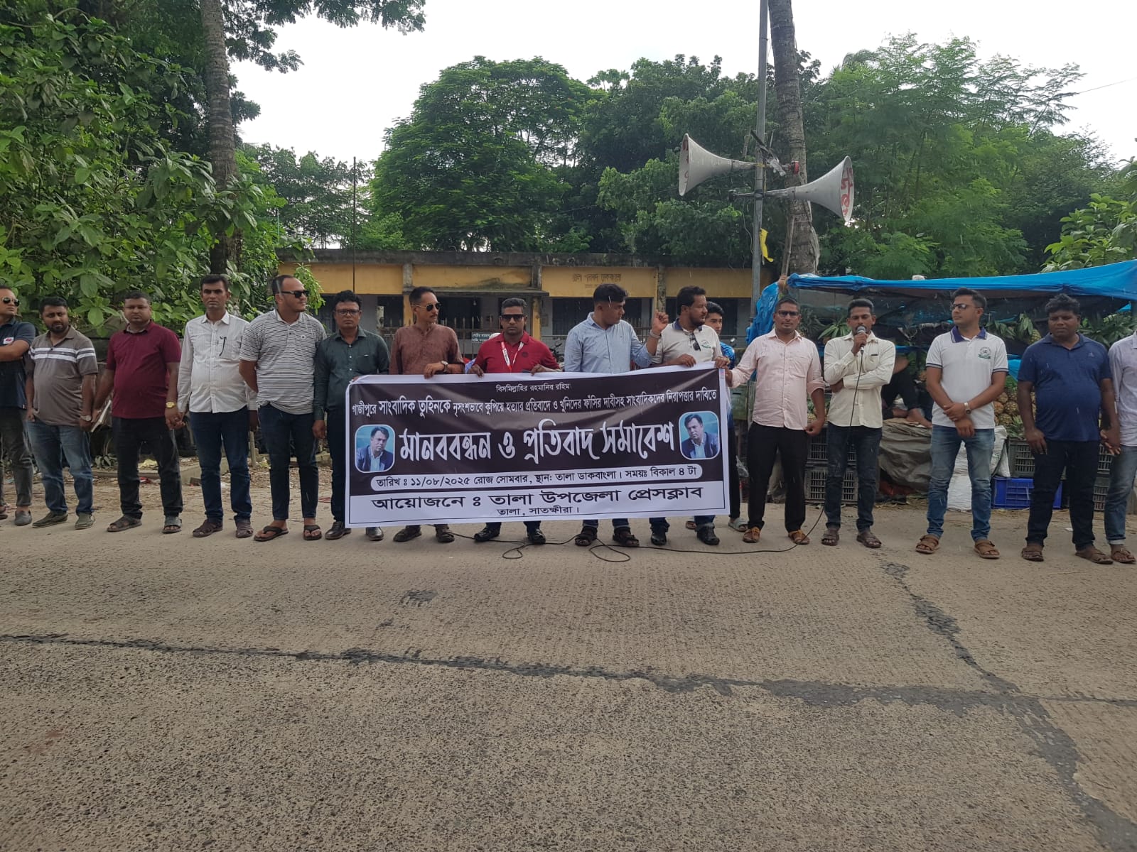 সাংবাদিক আসাদুজ্জামান তুহিন হত্যার প্রতিবাদে তালা উপজেলা প্রেসক্লাবের পক্ষ থেকে প্রতিবাদ সমাবেশ ও মানববন্ধন অনুষ্ঠিত ।