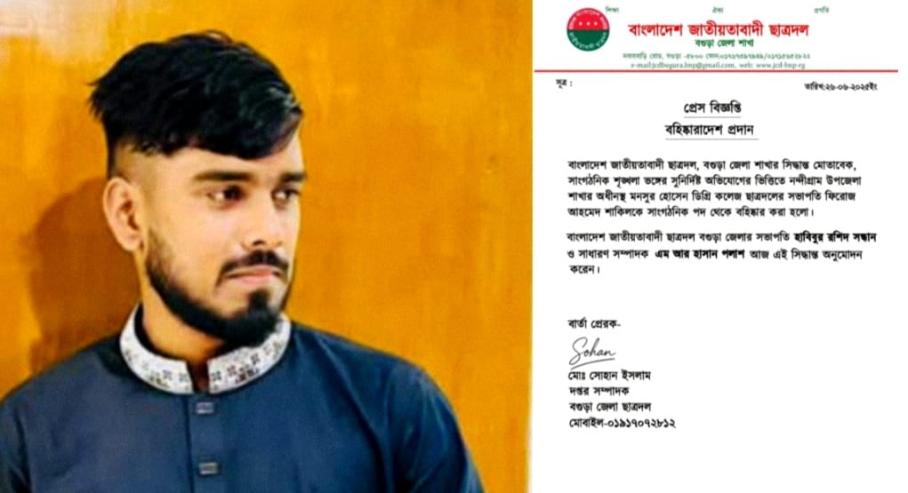 বগুড়া জেলা ছাত্রদলের সভাপতি হাবিবুর রশিদ সন্ধান ও সাধারণ সম্পাদক এম আর হাসান পলাশ দলীয় সিদ্ধান্তে এ আদেশ অনুমোদন করেন। বিষয়টি নিশ্চিত করেন জেলা ছাত্রদলের গণমাধ্যম সম্পাদক এমএ মহিউদ্দিন।