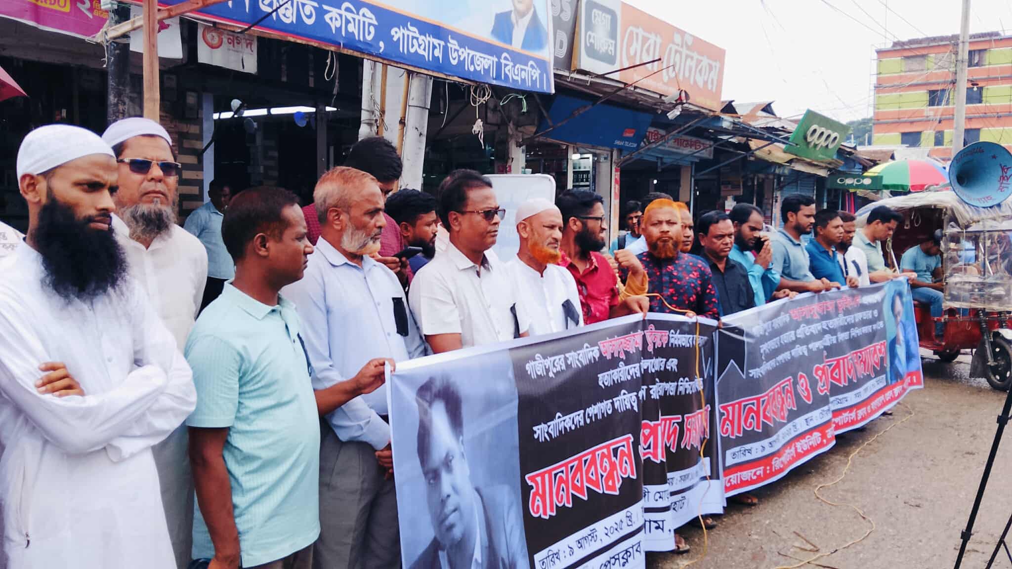 পাটগ্রামে সাংবাদিক তুহিন হত্যার প্রতিবাদে মানববন্ধন